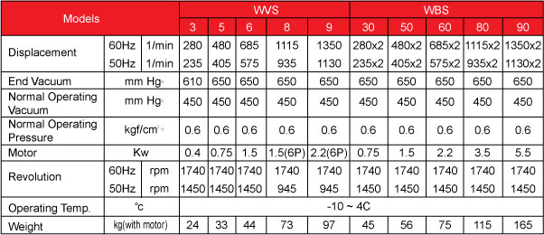Wonchang's WVS / WBS pumps are Carbon Vane Rotaty, Single Stage, Air-Cooled and Direct Driven.